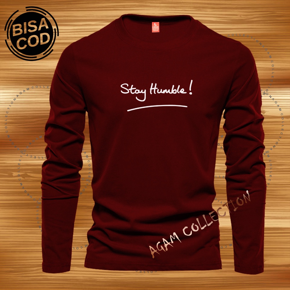 Detail Agam Collection Baju Kaos Distro Stay Humble Text Putih Lengan Panjang Premium Quality Kaos Pria Keren Kaos Cewek/Cowok