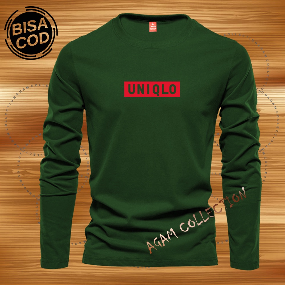 Detail Agam Collection Baju Kaos Distro UniQlo Blok Text Merah Lengan Panjang Premium Quality Kaos Pria Keren Kaos Cewek/Cowok
