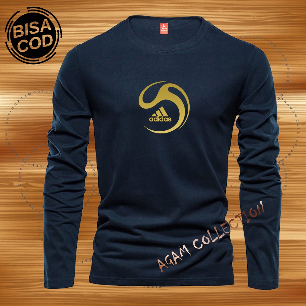 Detail Agam Collection Baju Kaos Distro Ads bola Text Gold Lengan Panjang Premium Quality Kaos Pria Keren Kaos Cewek/Cowok