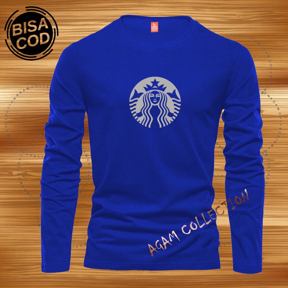 Detail Agam Collection Baju Kaos Distro starbucks Text Putih Lengan Panjang Premium Quality Kaos Pria Keren Kaos Cewek/Cowok