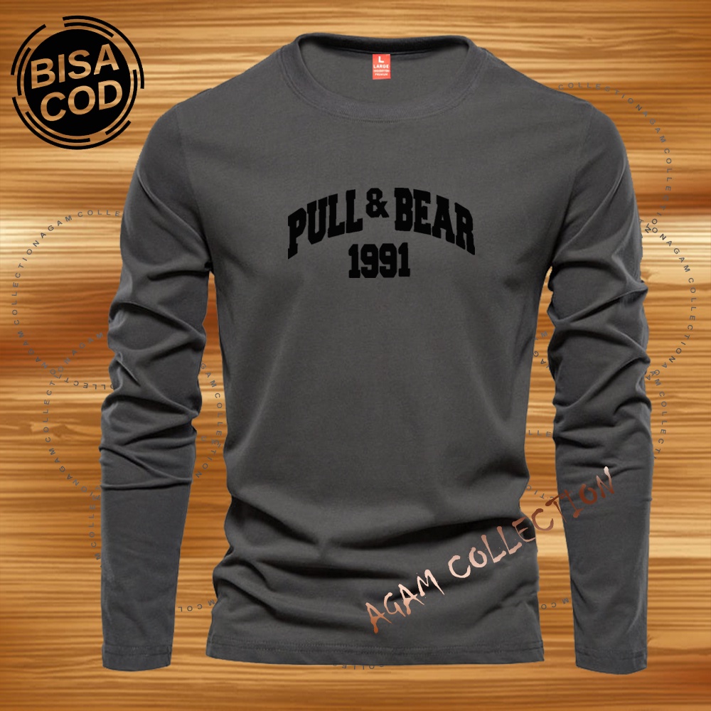 Detail Agam Collection Baju Kaos Distro Pull&Bear 1992 Text Hitam Lengan Panjang Premium Quality Kaos Pria Keren Kaos Cewek/Cowok
