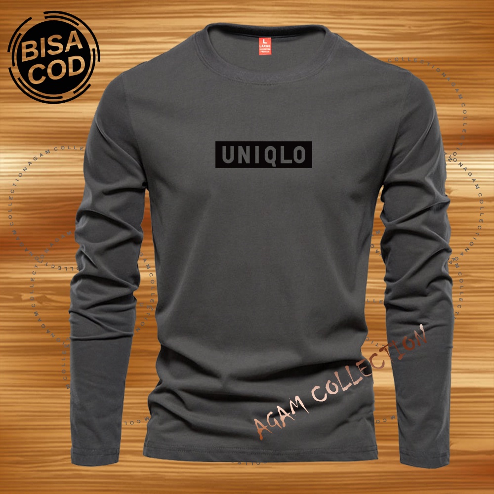 Detail Agam Collection Baju Kaos Distro UniQlo Blok Text Hitam Lengan Panjang Premium Quality Kaos Pria Keren Kaos Cewek/Cowok