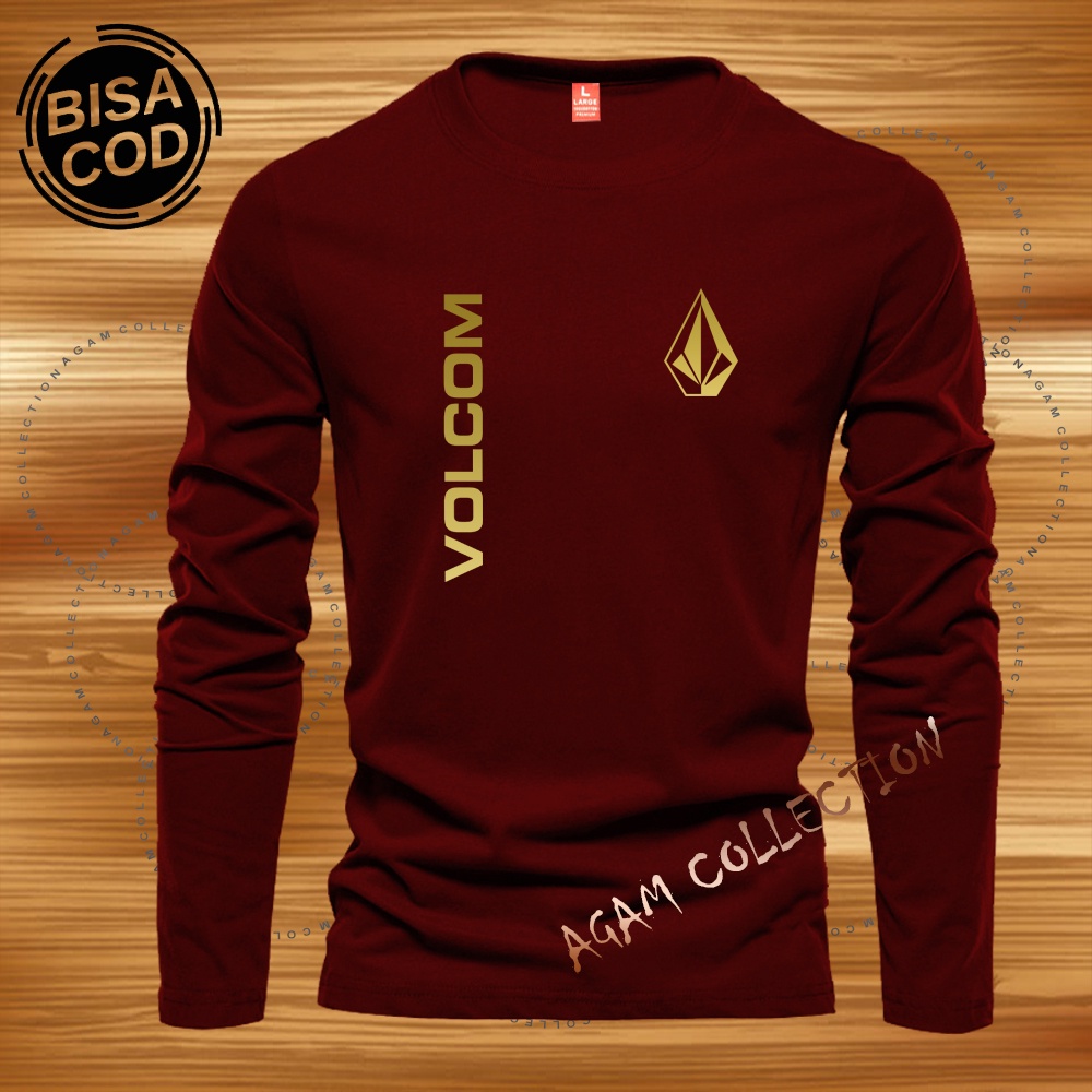 Detail Agam Collection Baju Kaos Distro Volc Kirka Text Gold Lengan Panjang Premium Quality Kaos Pria Keren Kaos Cewek/Cowok
