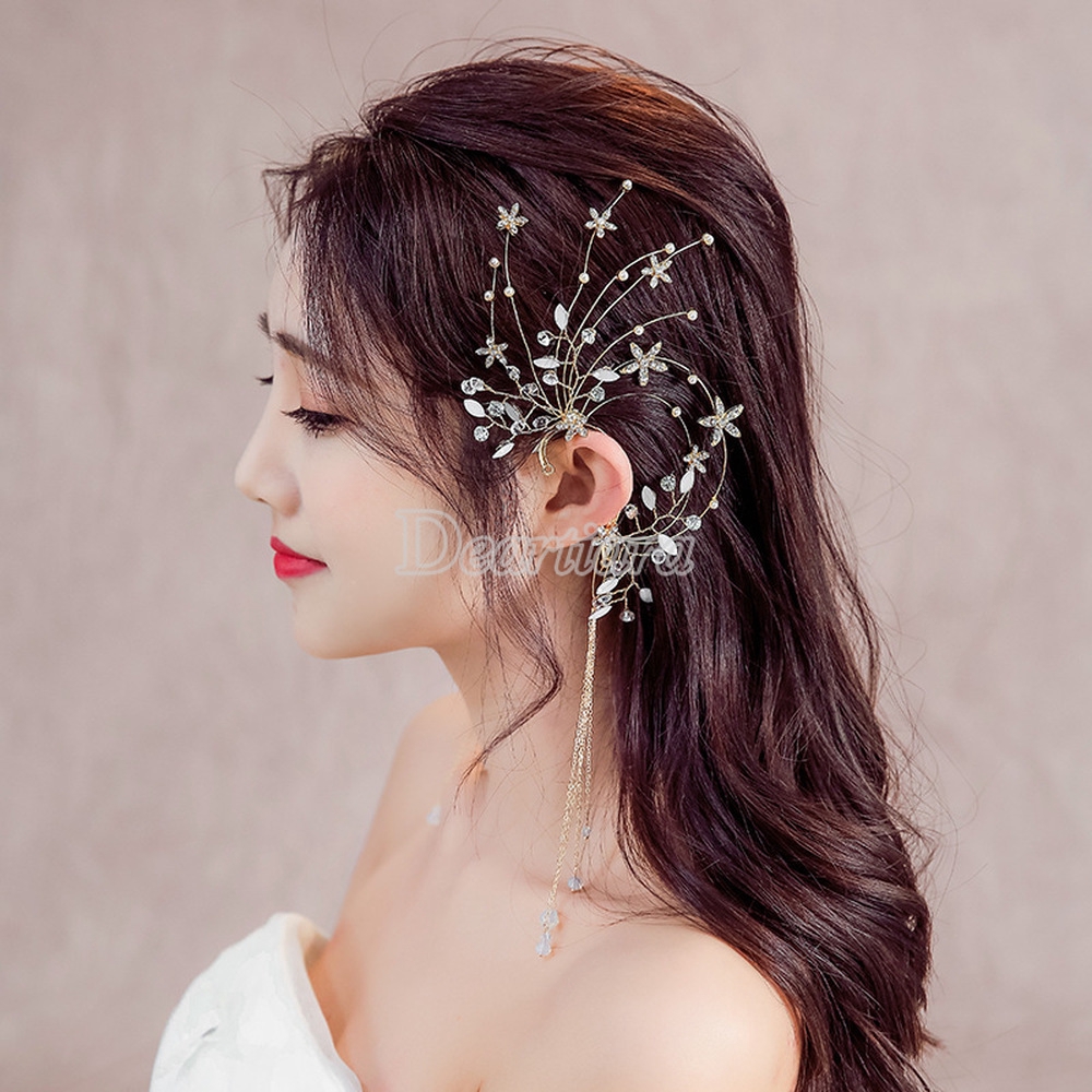 Aksesoris Fashion > Aksesoris Rambut > Hiasan Kepala, Tiara & Mahkota Bunga > Agatha Earpiece Earcuff Earclip Aksesoris Telinga Hiasan Kuping Wedding Gold Headpieceku
