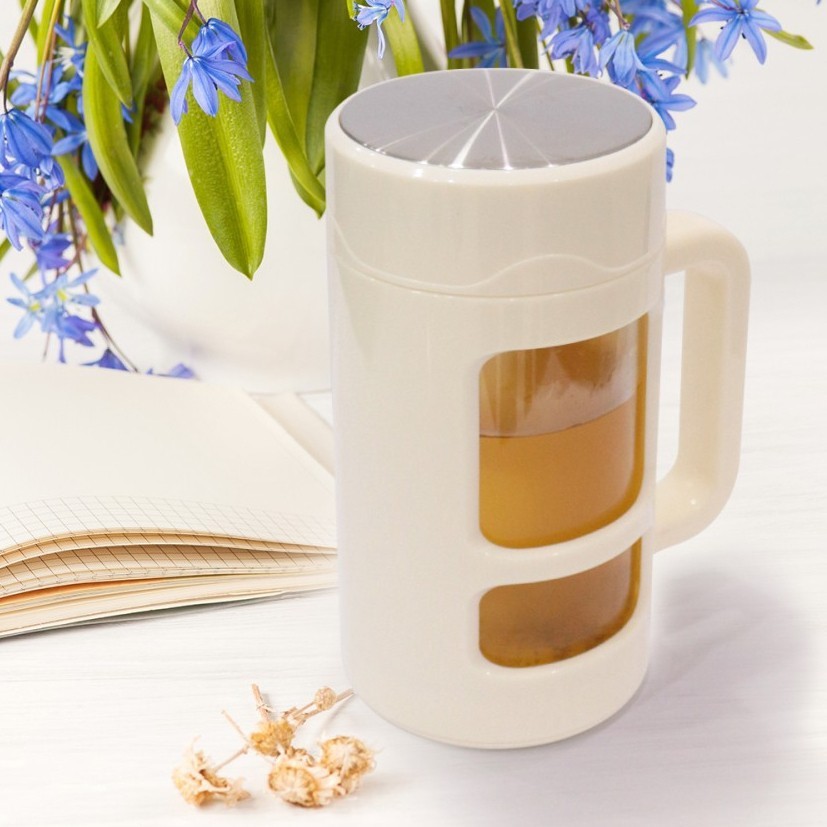 Fitur : Mudah di pegang dan anti bocor. Plastik berkualitas tinggi yang tahan terhadap benturan. Bahan kaca yang terbuat dari Borosilicate glass yang tahan terhadap suhu dingin hingga -20⁰C dan suhu panas hingga 100⁰C yang tidak mudah pecah. Di lengkapi dengan saringan 304 stainless steel Foodgrade. Kemurnian rasa tetap terjaga