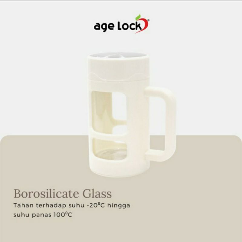 Fitur : Mudah di pegang dan anti bocor. Plastik berkualitas tinggi yang tahan terhadap benturan. Bahan kaca yang terbuat dari Borosilicate glass yang tahan terhadap suhu dingin hingga -20⁰C dan suhu panas hingga 100⁰C yang tidak mudah pecah. Di lengkapi dengan saringan 304 stainless steel Foodgrade. Kemurnian rasa tetap terjaga.