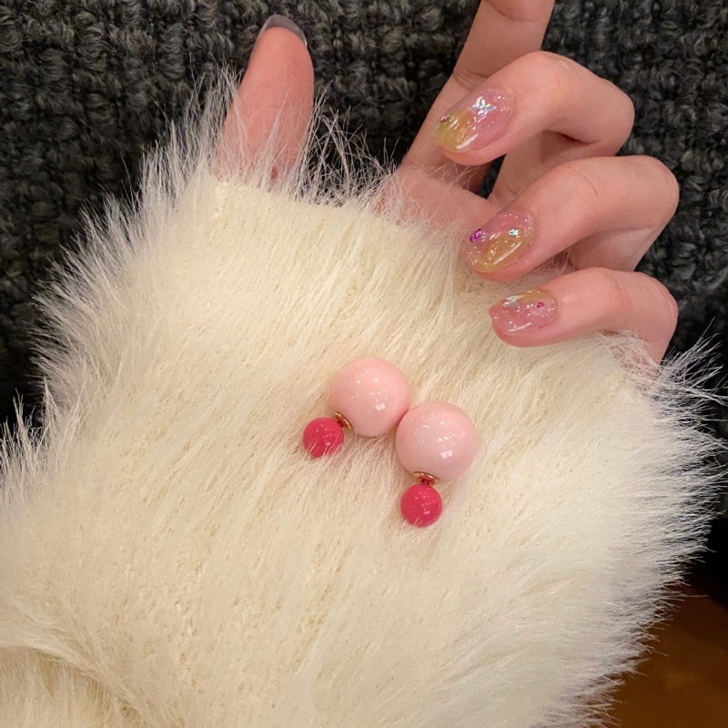 Detail Aghellogirl Musim Panas Baru Permen Warna Bola Anting-Anting925 Perak Jarum niche Desain Rasa, Sepasang Anting Pribadi~