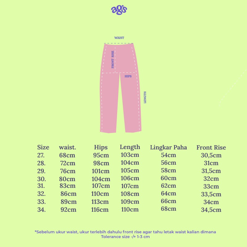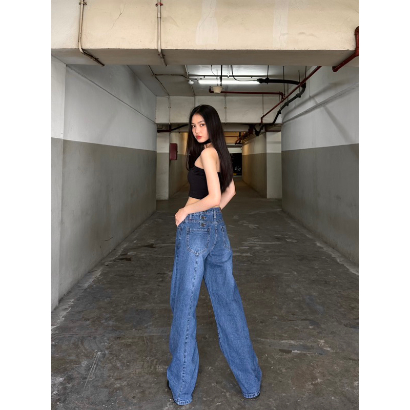 Produk AGS terbaru ini merupakan jeans dengan perpaduan antara wide leg dan loose jeans. Ada detail di bagian pinggang depan dekat kancing. Dan ada 3 kancing di bagian pinggang belakang. Terdapat detail jahitan/stitching di bagian belakang celana. AGS memakai bahan yang sangat premium sehingga sangat nyaman dipakai (jeans halus & tidak gatal). bahan sedikit stretch