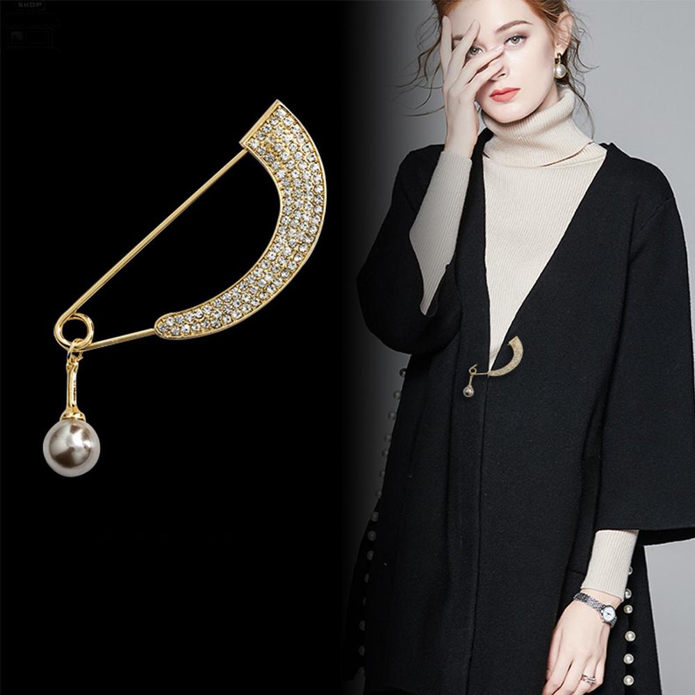 Bros Kerah Pin Corsage Mutiara Liontin Fashion Mantel Perhiasan Pin Melengkung Berlian Imitasi Kristal Temperamen Sederhana Aksesoris Wanita