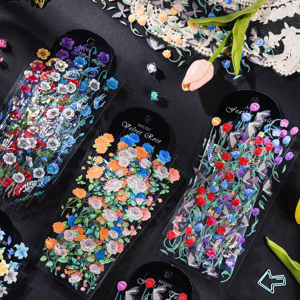 Buku & Alat Tulis > Buku Tulis & Kertas > Label & Stiker > Agustina Dark Night Flowers Stiker Dreamy Baru Trendi Scrapbooking Tangan Akun Alat Tulis Ponsel Case Album Stiker Hias