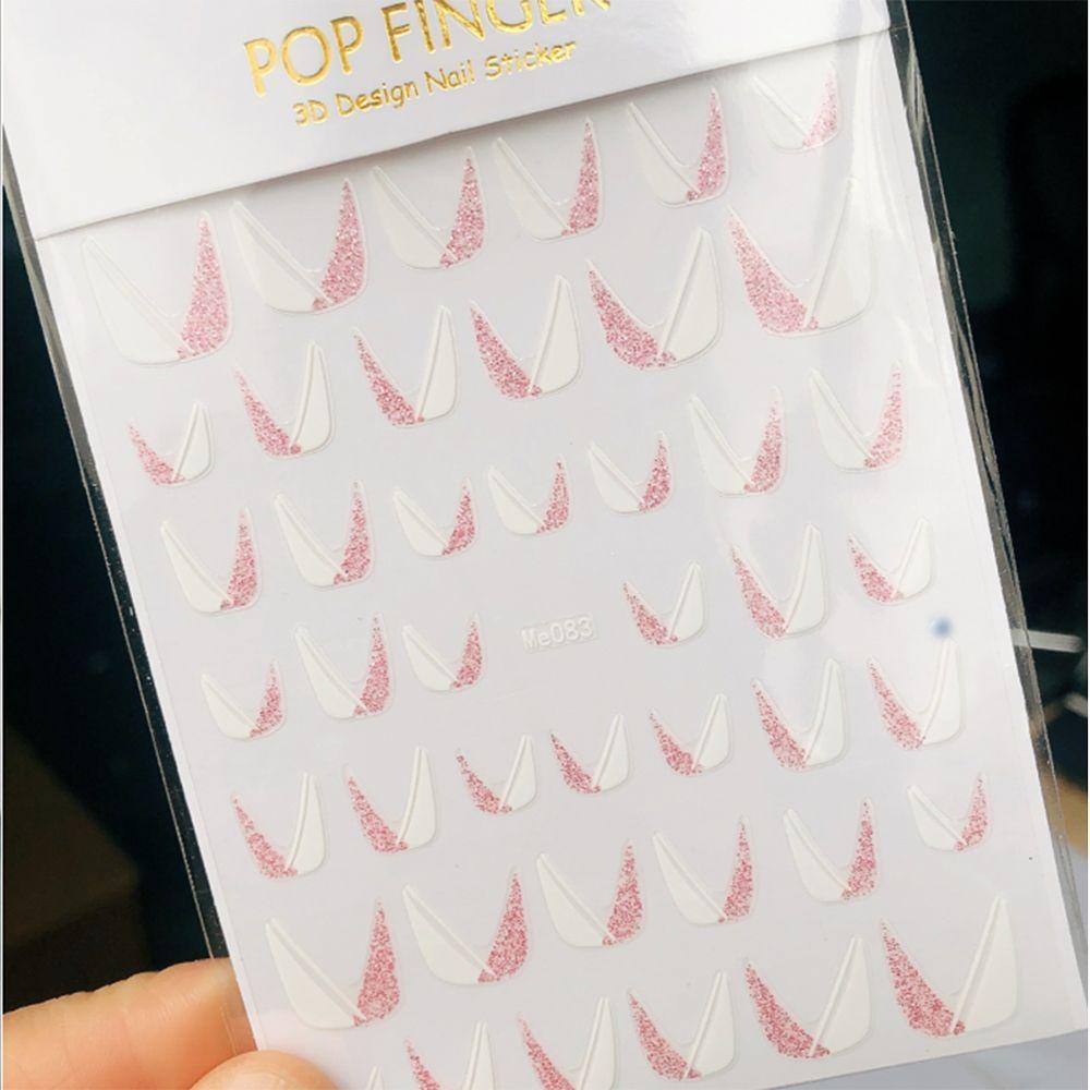 Detail Agustina French Tips Stiker Kuku Kreatif Mode Geometri Mengkilap Glitter French Line Nail Slider Gadis DIY Manicure Aksesoris Putih Sliders Decals