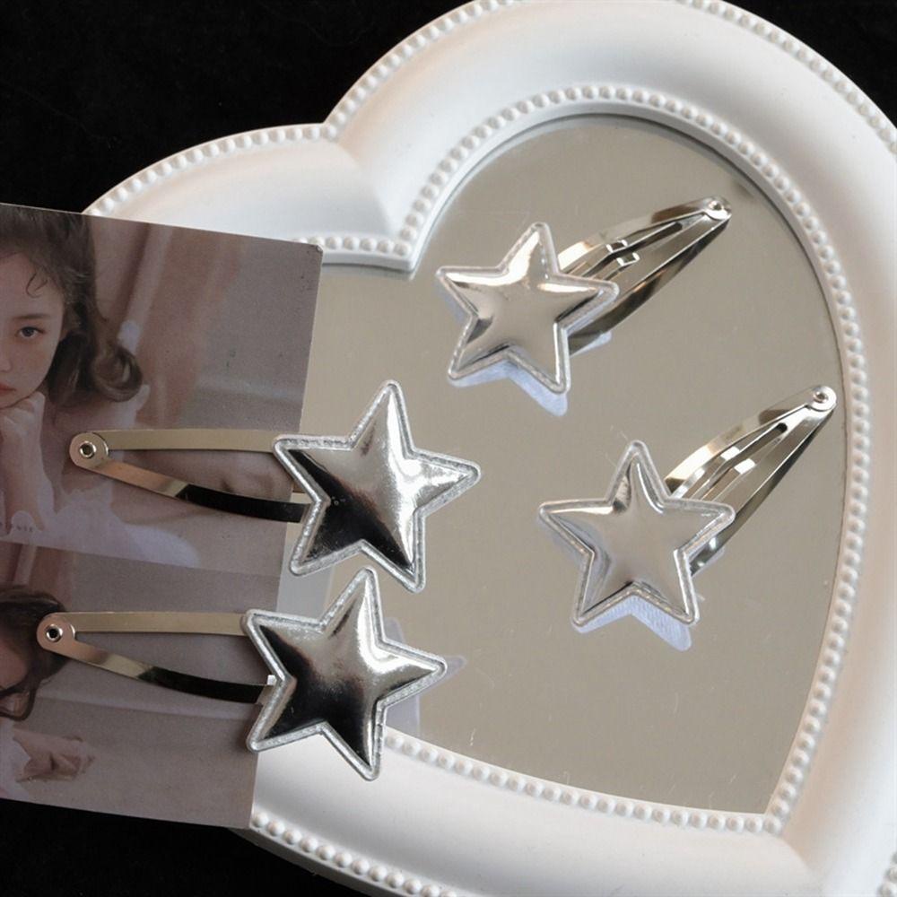 Aksesoris Fashion > Aksesoris Rambut > Jepitan & Pin Rambut > Agustinina Bintang Jepit Rambut Kreatif Retro Perak y2k Bintang Berujung Lima BB Klip Bentuk Geometri Aksesoris Rambut Perempuan