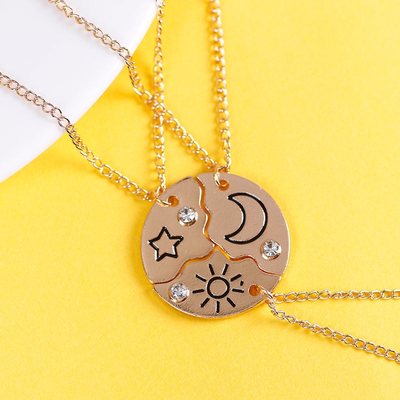 Detail Ahellogirl 3pcs/set 2023terbaru Bintang Bulan Matahari Zirkon Liontin Kalung Jahitan Kreatif Klavikula Rantai Hadiah Pacar