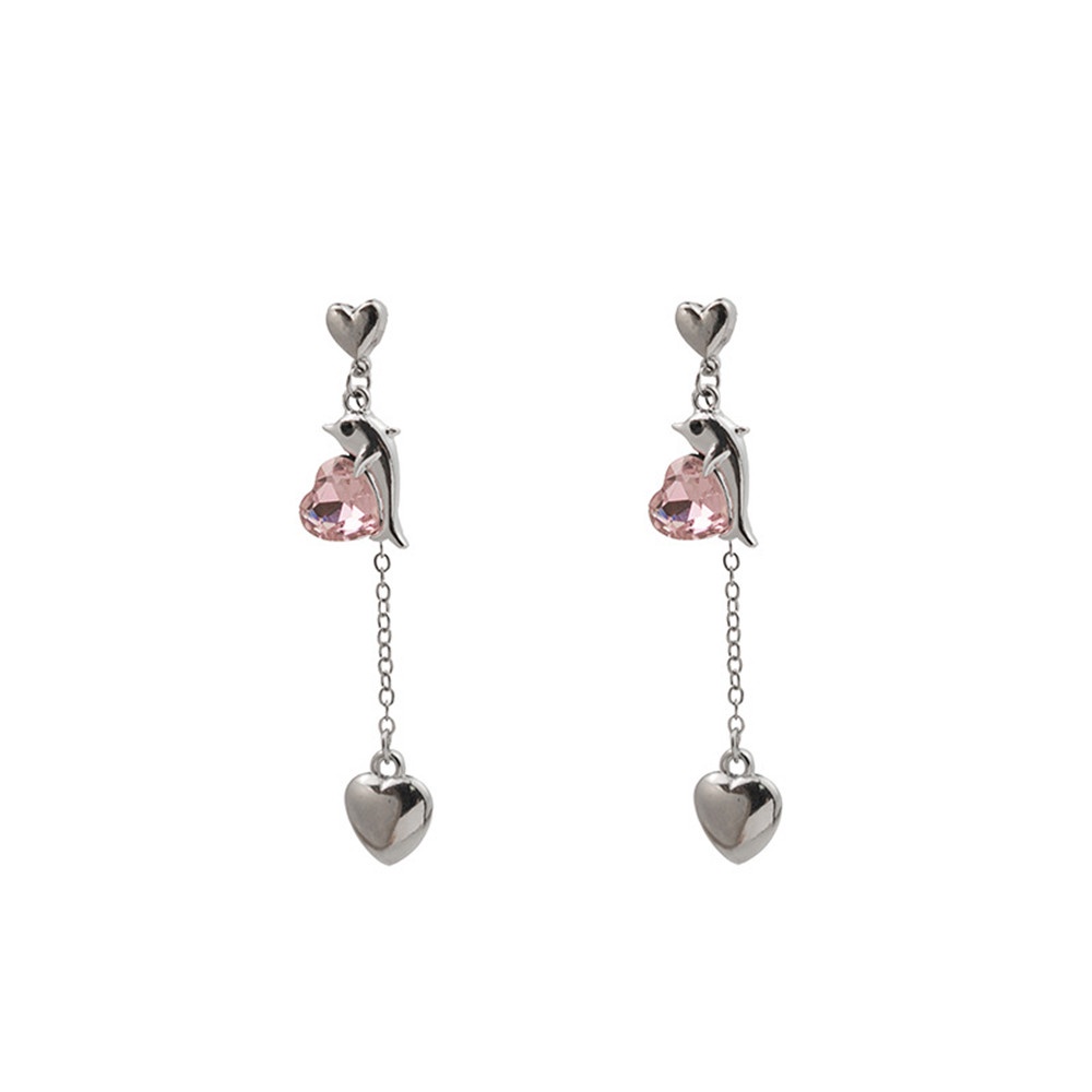 Detail Ahellogirl Anting Jarum Silver Anting Tusuk Motif Rumbai Hati Kelinci Lumba Pink Berlian Untuk Wanita Perempuan