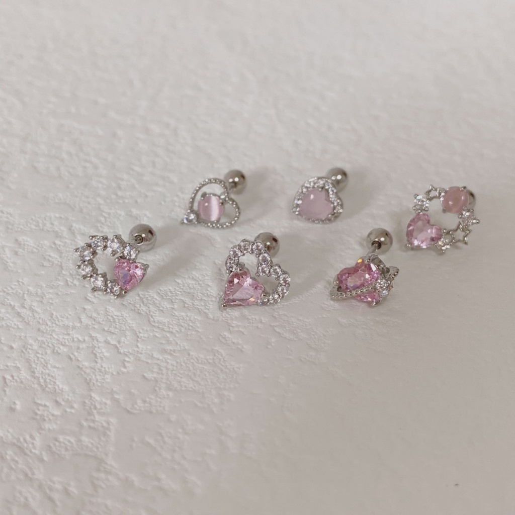 Detail Ahellogirl Anting Kristal Zircon Hati Pink Lapis Silver S925 Untuk Wanita Perempuan