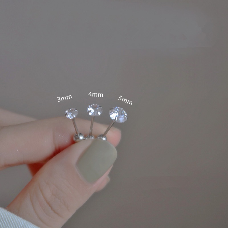 Detail Ahellogirl Anting Tusuk Jarum Perak925Korea Simple Empat Cakar Zirkon Hypoallergenic Untuk Wanita