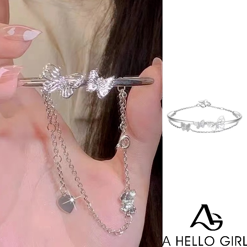 Aksesoris Fashion > Gelang Tangan & Bangle > Ahellogirl Double-layer Ikatan Simpul Gelang Rumbai Terbuka Gelang Wanita Niche Desain Rasa Manis Boudoir Madu Cinta Gelang Grosir