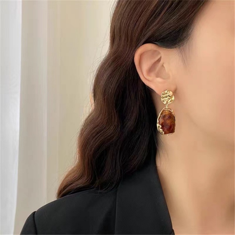 Aksesoris Fashion > Anting > Ahellogirl Korea Retro Istana Gaya Resin Geometris Anting-Anting Wanita Baru Berlebihan High-end Ringan Mewah S925 Perak Jarum Anting Tren