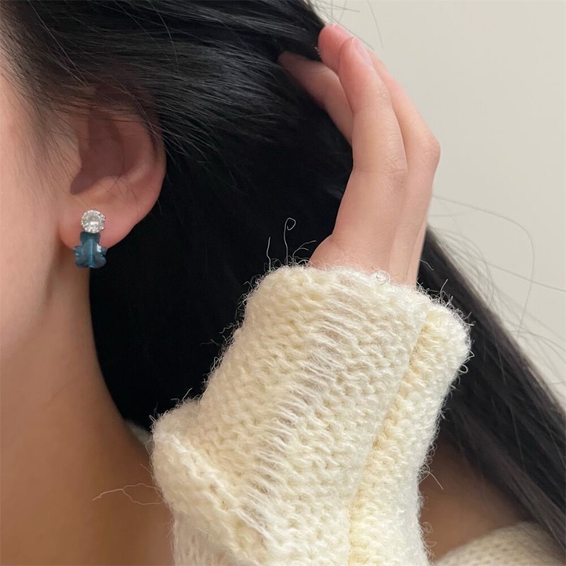 Detail Ahellogirl Korea Selatan Dongdaemun Berlian Imitasi Lucu Childlike Small Bear Earrings Multi-Warna Penurunan Usia Warna Anting-Anting925 Perak Jarum Perempuan