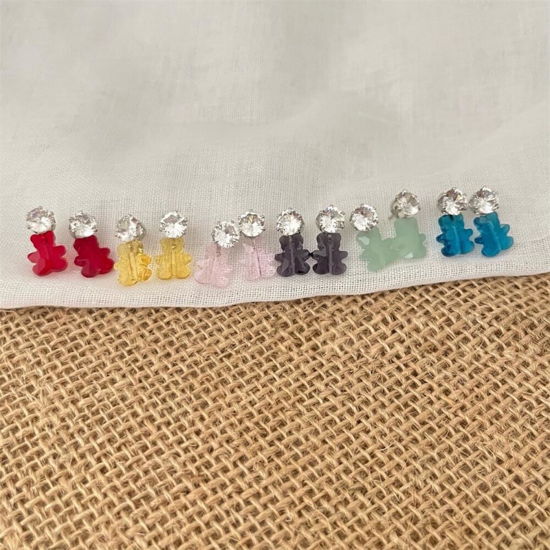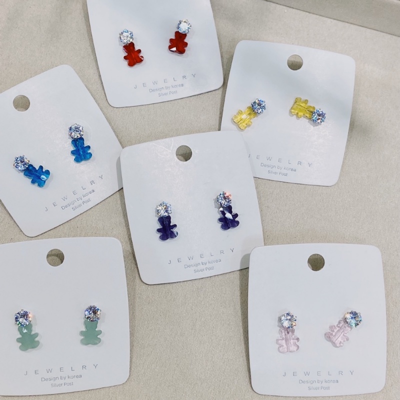 Aksesoris Fashion > Anting > Ahellogirl Korea Selatan Dongdaemun Berlian Imitasi Lucu Childlike Small Bear Earrings Multi-Warna Penurunan Usia Warna Anting-Anting925 Perak Jarum Perempuan