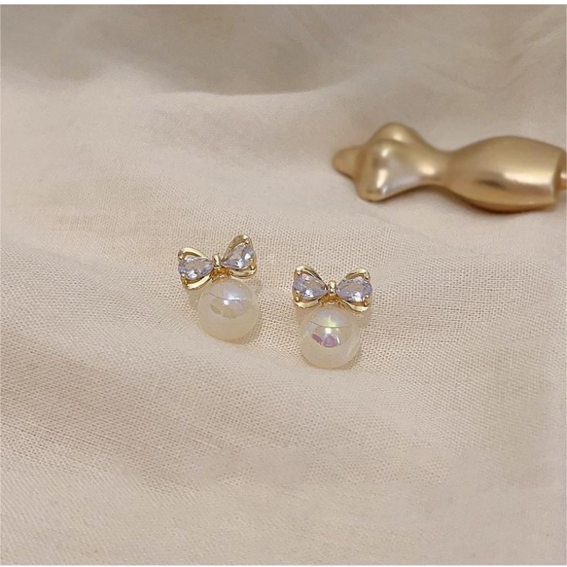 Aksesoris Fashion > Anting > Ahellogirl Mermaid Pearl Earrings Untuk Wanita S925 Perak Jarum Indah Super Berkilau Zirkon Bow Tie Earrings Cahaya Mewah Anting Kecil