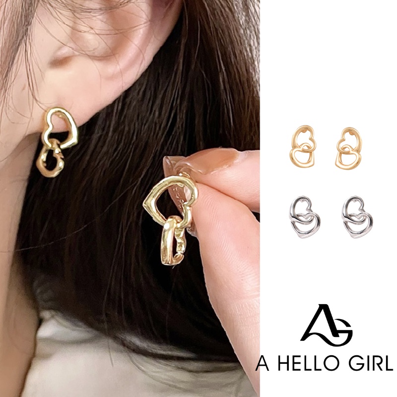 Detail Ahellogirl Minimalis Gaya Manis Dan Keren Cinta Ganda Anting Logam925Jarum Perak Jarum Lembut Dan Girly Elegan Sehari Hari Anting Serbaguna Earrings