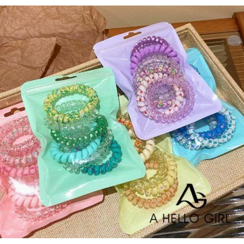 Aksesoris Fashion > Aksesoris Rambut > Ikat Rambut, Pita & Scrunchie > Ahellogirl Musim Semi Dan Musim Panas Vigor Gadis Manis 6tas Kabel Telepon Cincin Rambut Bakso Kepala Diikat Ponytail Dicetak Fashion Tali Rambut Ins