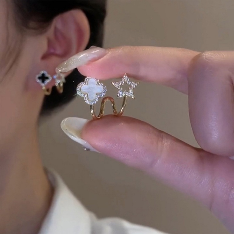 Aksesoris Fashion > Anting > Ahellogirl Niche Anting Perempuan Bunga Perancis Temperamen Desain Rasa Cahaya Mewah Bintang Berujung Lima Empat Daun Anting Bunga Baru Trendi Anting-Anting Untuk Wanita
