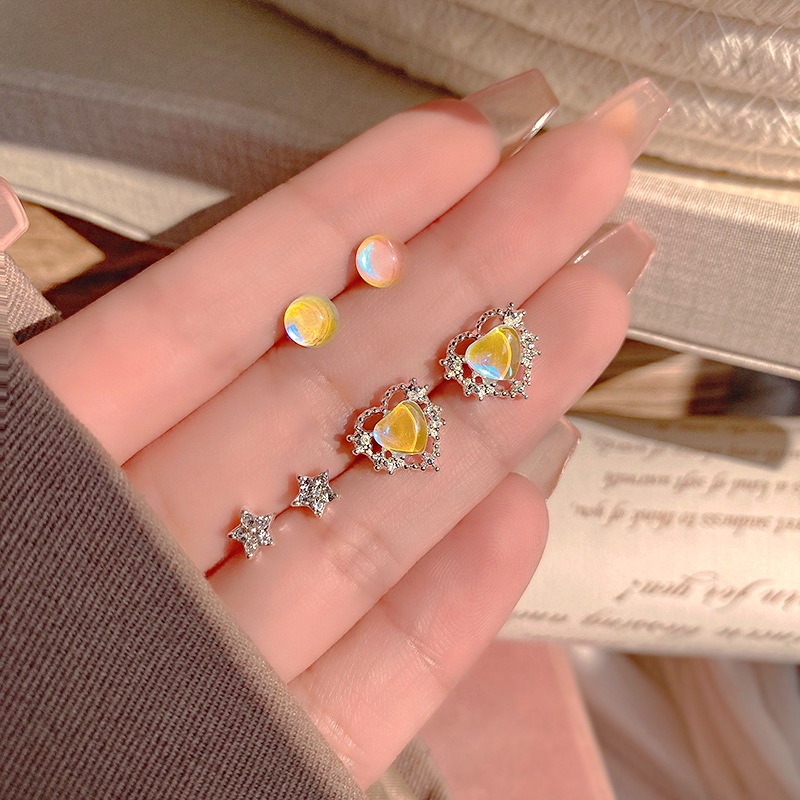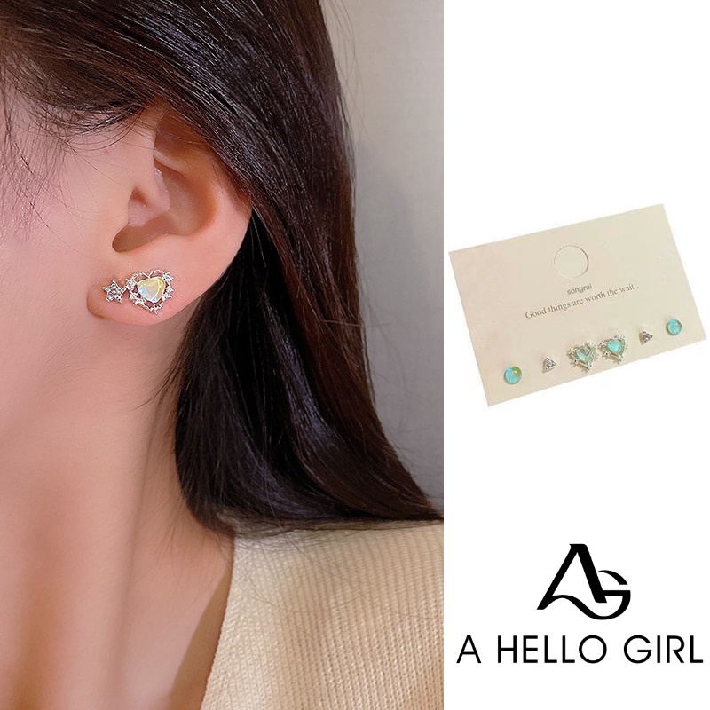 Detail Ahellogirl S925 Jarum Perak Korea Dream Color Love Stud Earrings Set