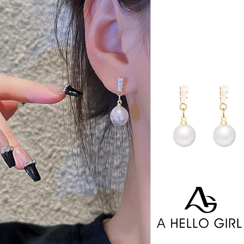 Aksesoris Fashion > Anting > Ahellogirl S925 Perak Jarum Zirkon Geometris Anting-Anting Wanita Ins Trendi Cahaya Mewah Niche Mutiara Anting-Anting Bersih Merah Yang Sama Anting-Anting