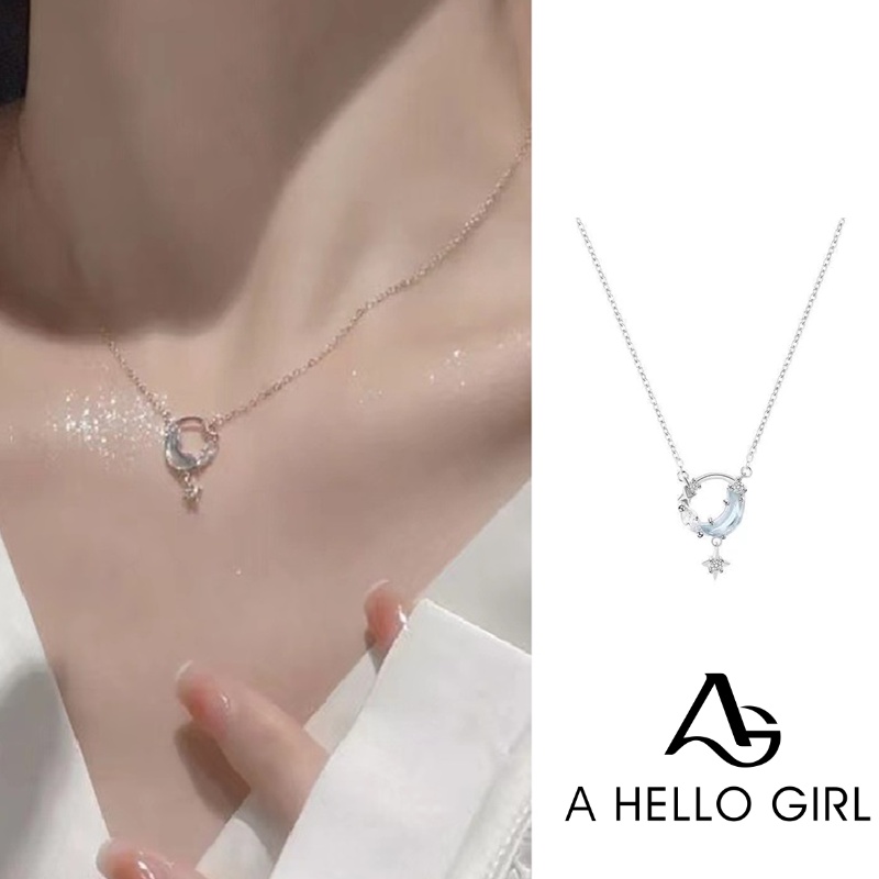 Aksesoris Fashion > Kalung > Rantai & Link > Ahellogirl Zirkon Bulan Galaxy Kalung Perempuan Musim Panas Ins Cahaya Mewah Desain Niche High-end Boudoir Madu Rantai Klavikula Untuk Pacar
