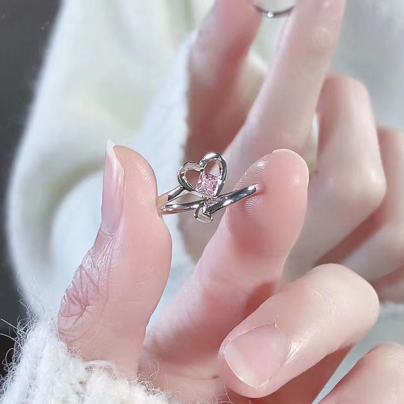 Detail Ahelloirl Indah Hati Zirkon Bertatahkan Cincin Terbuka Perempuan Sederhana Rasa Tinggi Niche Desain Tren Fashion Perhiasan Serbaguna