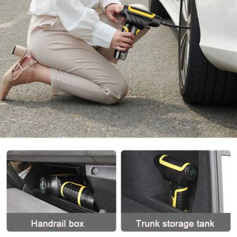 Alat ini adalah inflator atau pompa yang memiliki bentuk keren dan futuristik. Dilengkapi senter LED untuk memberikan penerangan dan layar digital guna mengetahui tingkat tekanan ban mobil. Alat ini sangat cocok dibawa di dalam mobil, terutama bagi Anda yang sering bepergian jauh.