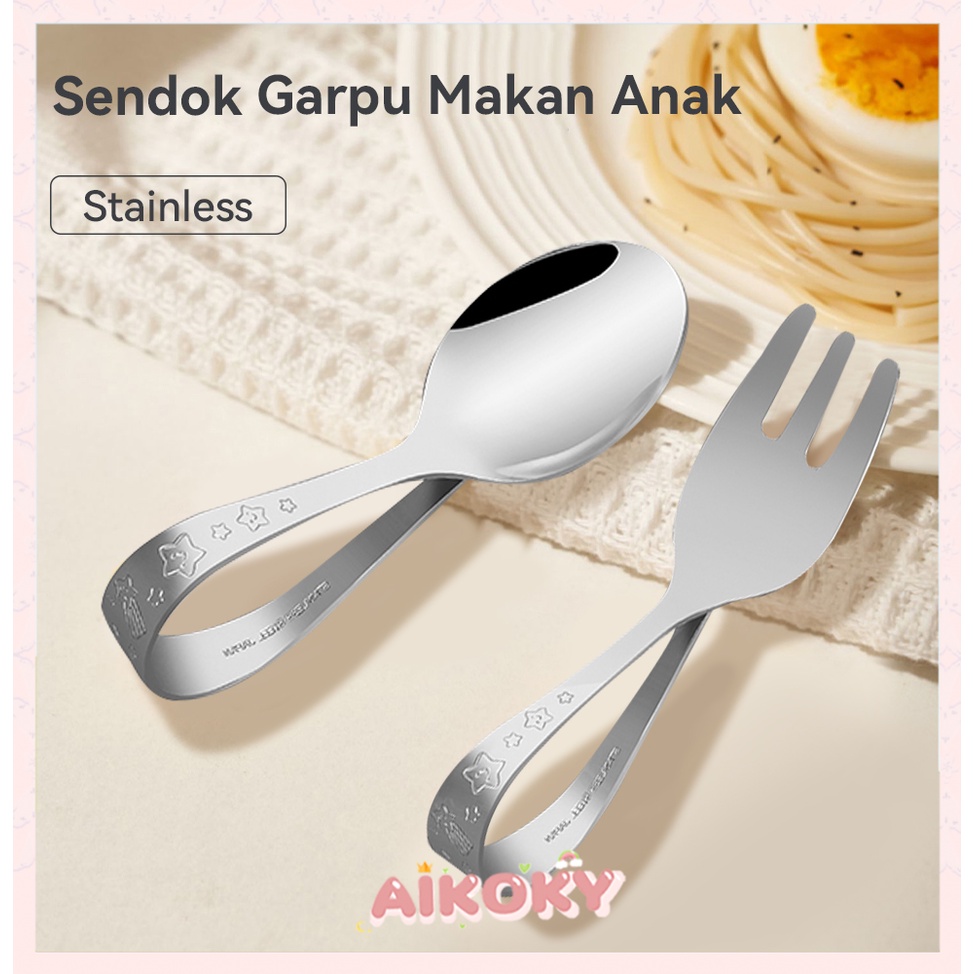 Detail AIKOKY Sendok Makan Anak Training Spoon Stainless Sendok Garpu Anak Set
