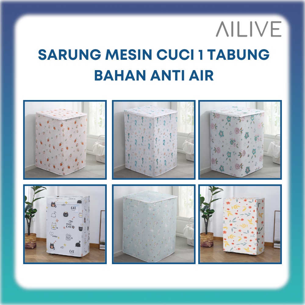 AILIVE Sarung Cover Mesin Cuci 1 Tabung Top Loading Premium PEVA Buka Pintu Tutup Atas. Motif terbaru Sarung Mesin Cuci Jumbo Extra Large
