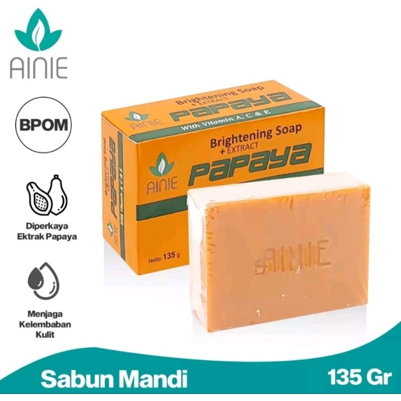 Sabun Papaya Whitening Soap Ainie adalaah sabun pembersih tubuh yang terbuat dari minyak kelapa berkualitas dan diperkaya dengan ekstrak Papaya, Vitamin A,C,dan E dan Arbutin,membantu mencerahkan dan memutihkan kulit