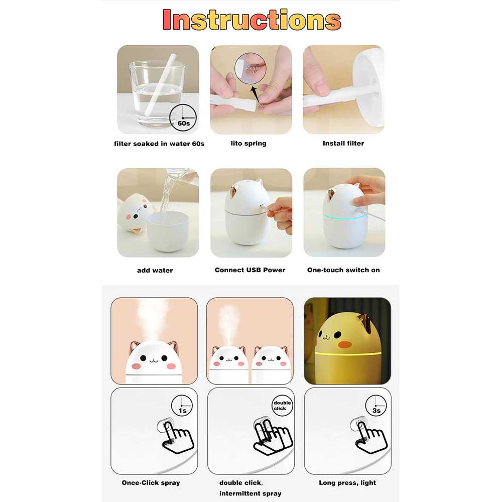 Detail Air Humidifier Purifier Pelembab Ruangan Cute Cat 250ML Humidifer Karakter Humi Pelembab Udara Ruangan Berkualitas
