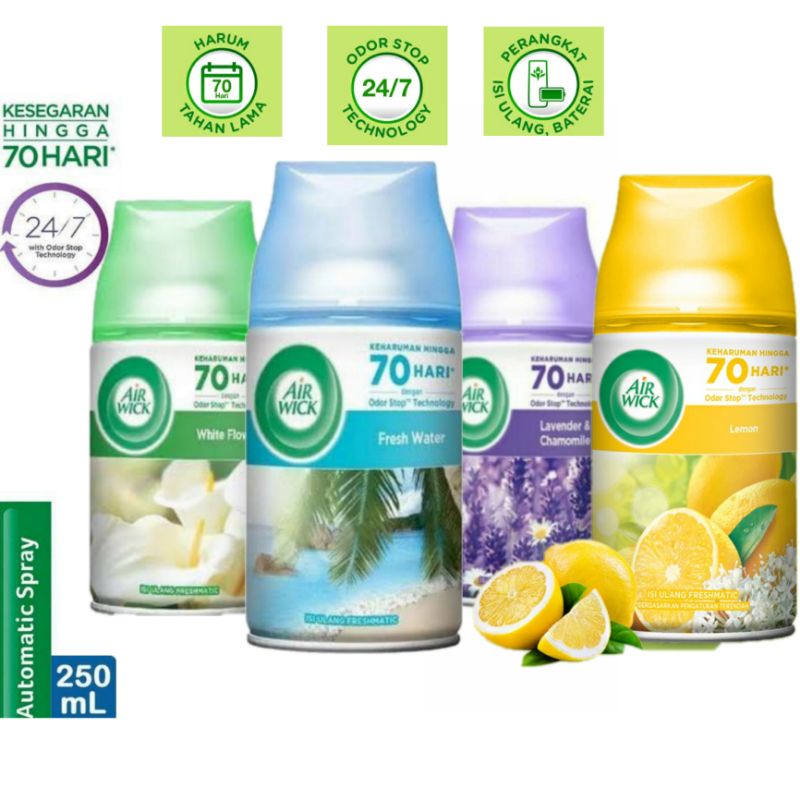 Detail Air Wick Freshmatic Spray Refill Fresh Water [250mL]- Pewangi Ruangan /Lemon/ Refill Whita Flower /Fresh Water/lavender & chamomile