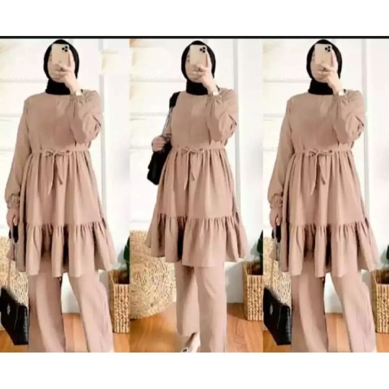 Detail aira set terbaru // one set tunik polos jumbo