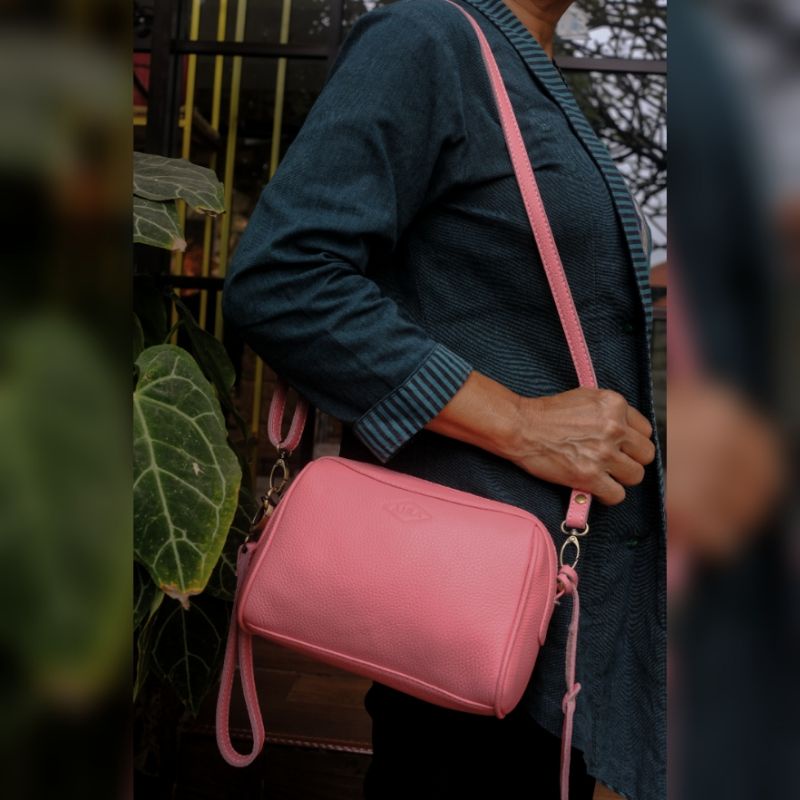 Size : 20x10x15 cm Material : kulit sapi jenis krom Warna : pink, blue Kain dalam : kain lurik Tali panjang adjustable Bisa jadi pouch (tali lepas pasang)