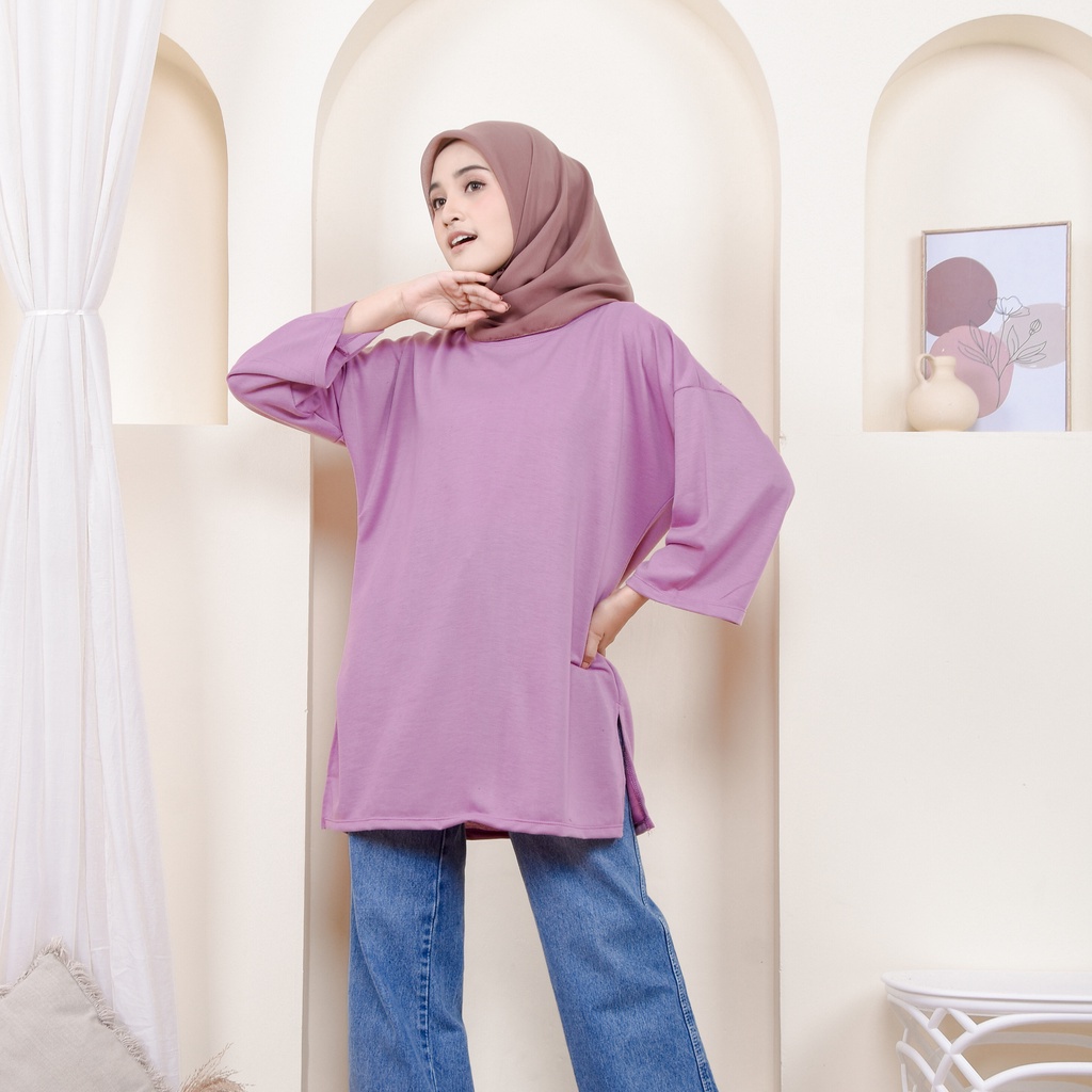 Detail Aira Top Oversize Basic/kaos oversize wanita/kaos oversize bahan baby terry/Atasan wanita kekinian/kaos muslimah
