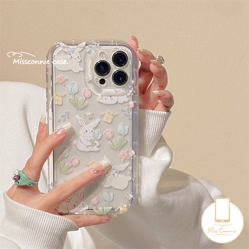 Airbag Shockproof Transparan Case Realme C21Y C15 C25 C33 C12 6i 5 5i 5s C35 C11 2020 C20 C25s C11 2021 C25Y C3 C1 C2 C20A Bunga Segar Kartun Lucu Kelinci Penutup Tpu Lembut