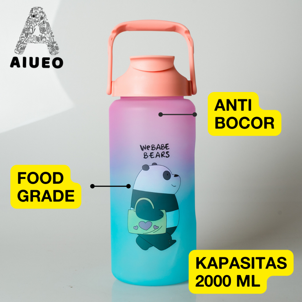 Detail AIUEO | COD Gratis Ongkir Botol Minum Pelangi 2 Liter + Botol Minum 800 mL 2 In 1 Set Free Sticker