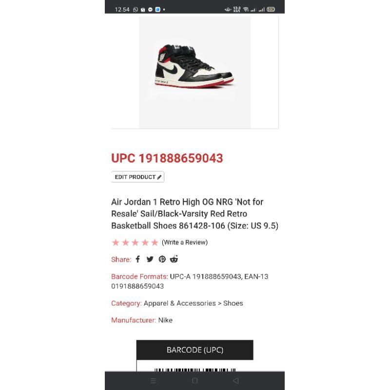 AJ1 Retro High OG "Not For Resale" Size:43 Made in China tembus UPC sampai kesize-sizenya minus pemakaian detail boleh Chat Toko