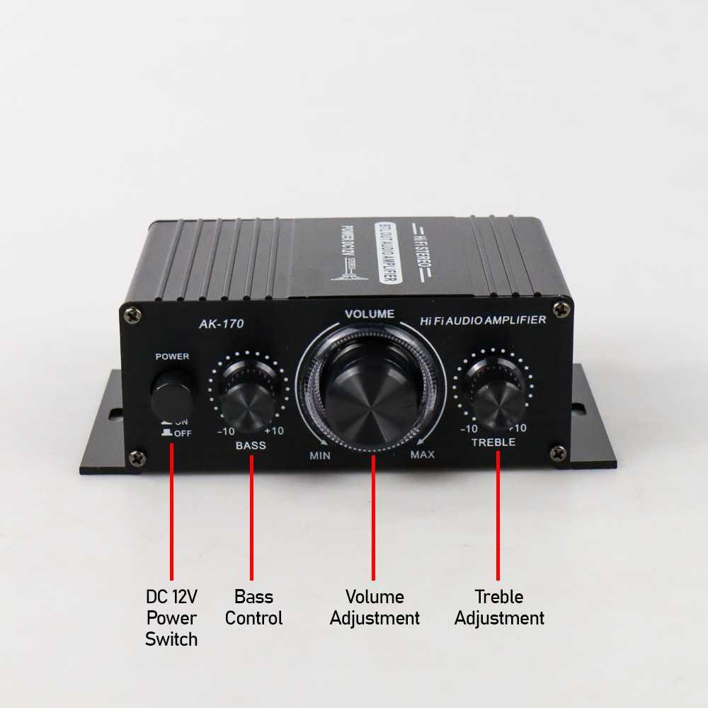 Hubungkan dengan Mudah Tak perlu menggunakan konektor, amplifier mini telah menyediakan berbagai port yang biasa digunakan untuk menghubungkan perangkat audio, seperti input RCA R/L,hingga port untuk speaker kanan dan kiri.