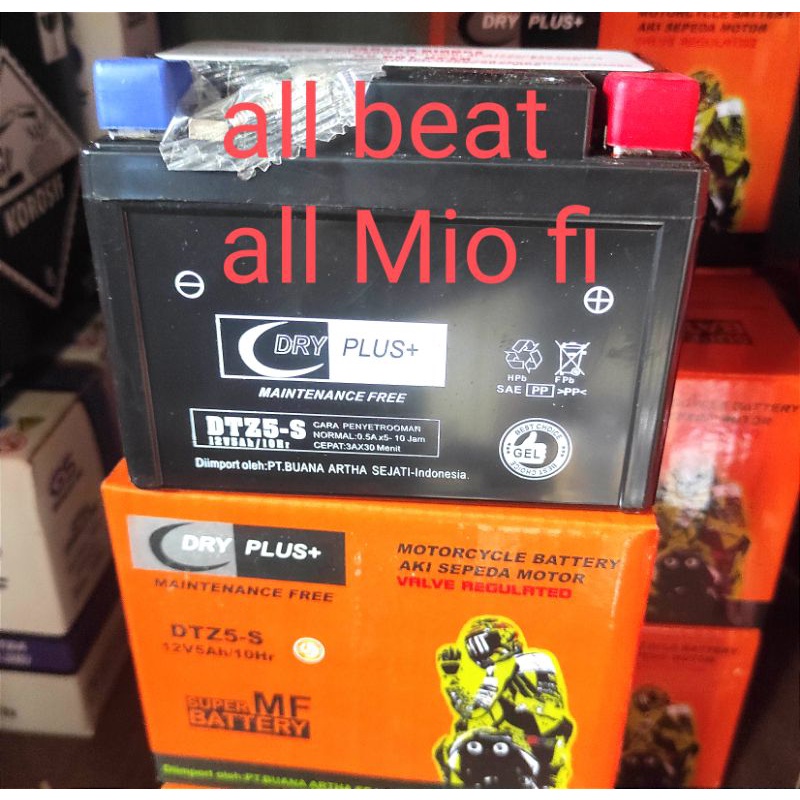 aki full kering DRY PLUS dtz5s all Honda matic beat Vario Scoopy Yamaha Mio fi