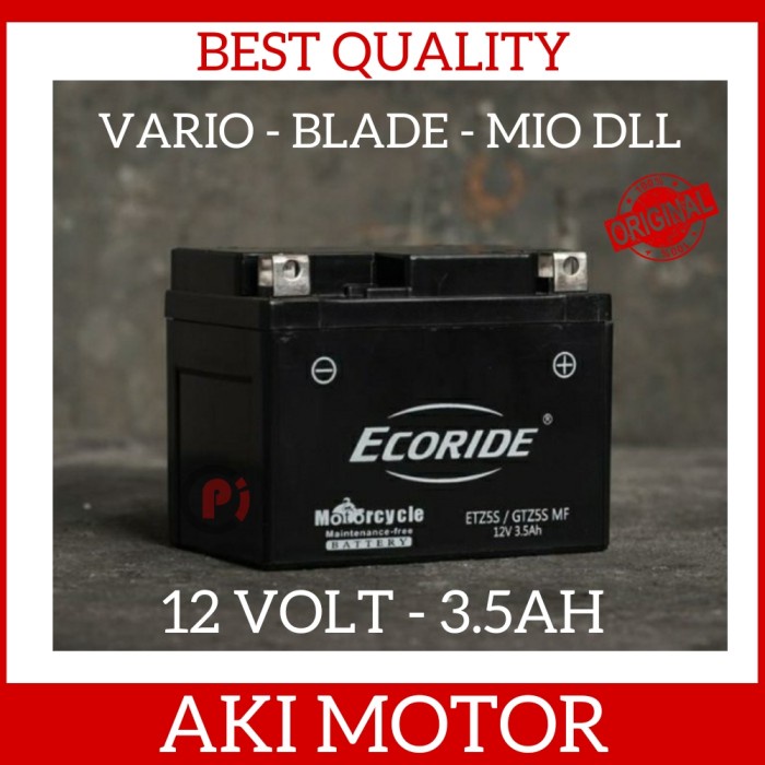 AKI ECORIDE MF adalah aki kering total yang tidak perlu diisi dengan elektrolit, dilengkapi teknologi Valve Regulated Lead Acid (VRLA) untuk kemudahan pemakai dan dengan ketahanan umur lebih panjang daripada aki konvensional.