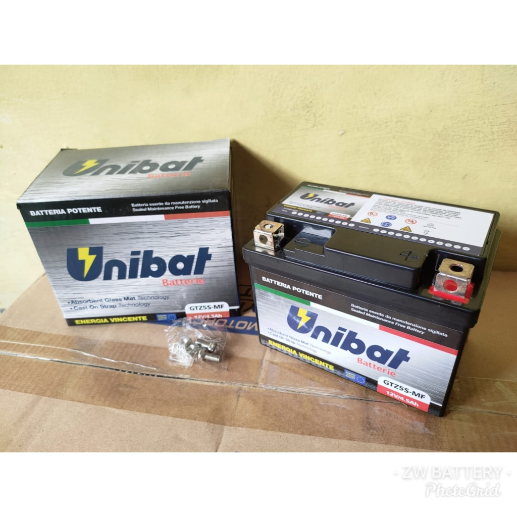 AKI MOTOR ORIGINAL UNIBAT AGM TECHNOLOGY GTZ5S / GTZ4V / YTZ4V / YTZ5S / MTZ5S AKI KERING SIAP PAKAI DAN SIAP STATER!! , KAPASITAS 12 VOLT 4.5 AMPERE UKURAN SAMA DENGAN BAWAAN MOTOR ANDA!! GARANSI 1 BULAN!