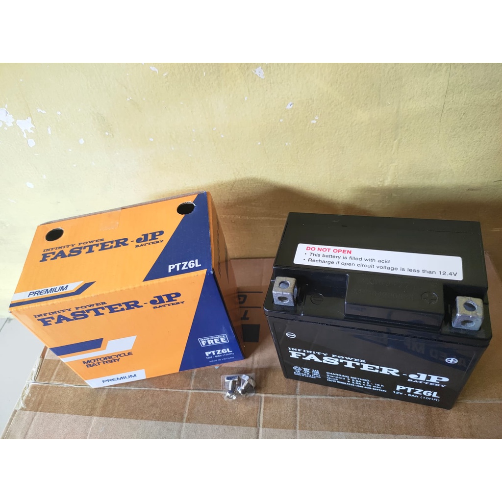 Aki Motor ORIGINAL FASTER-JP PTZ6L / GTZ6V / GTZ7S MF Aki Kering Siap Pasang dan Pakai. Made In Vietnam. Sudah Terisi Gel Elektrolit Dan Siap Pakai. YANG DIKIRIM SESUAI GAMBAR YAA MERK FASTER-JP PTZ6L, DUS KUNING-BIRU, AKI WARNA HITAM.