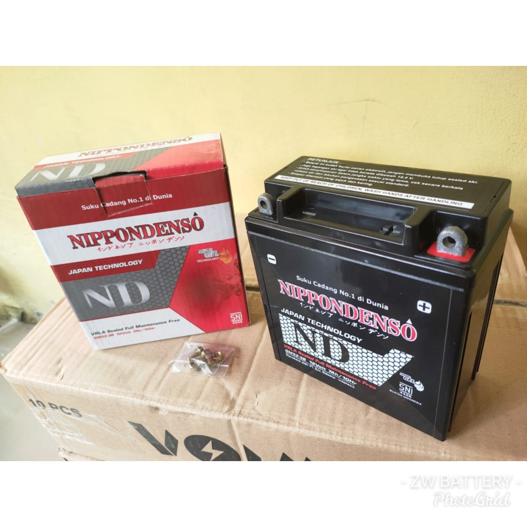 AKI MOTOR ORIGINAL NIPPONDENSO GM5Z-3B / GT6A / YT7C / YB5L-B / MTX5AL AKI GEL SIAP PAKAI, KAPASITAS 12 VOLT 7 AMPERE UKURAN SAMA DENGAN BAWAAN MOTOR ANDA, GARANSI 1 BULAN!!